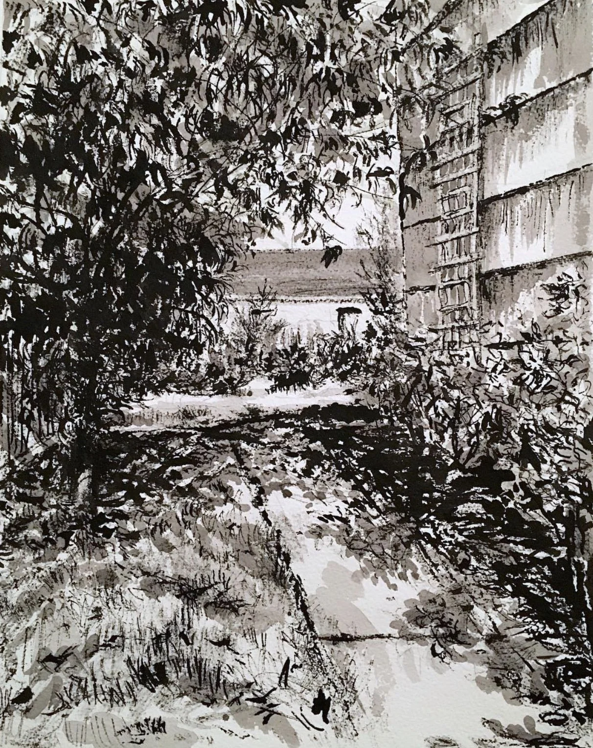 The Peach Tree on Jordan Road, 2017, Ink on paper, 14 x 11 inches